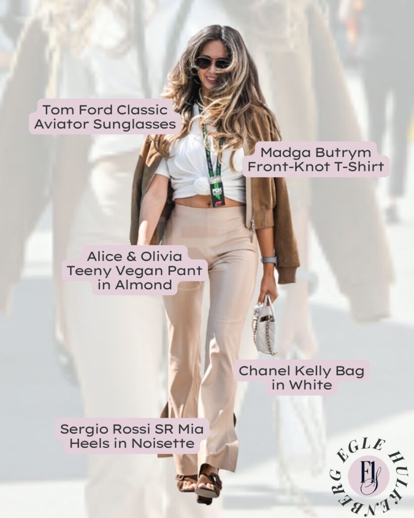 Alicia’s style feels fresh and contemporary, leaning into fitted silhouettes, clean lines and subtly elevated basics. She gravitates toward pieces that photograph well without appearing overly styled, often favoring neutral tones and streamlined shapes that feel both youthful and polished. In a paddock where fashion narratives are increasingly scrutinized, her aesthetic reads modern and approachable, aligning seamlessly with the energy of Formula 1’s emerging era.