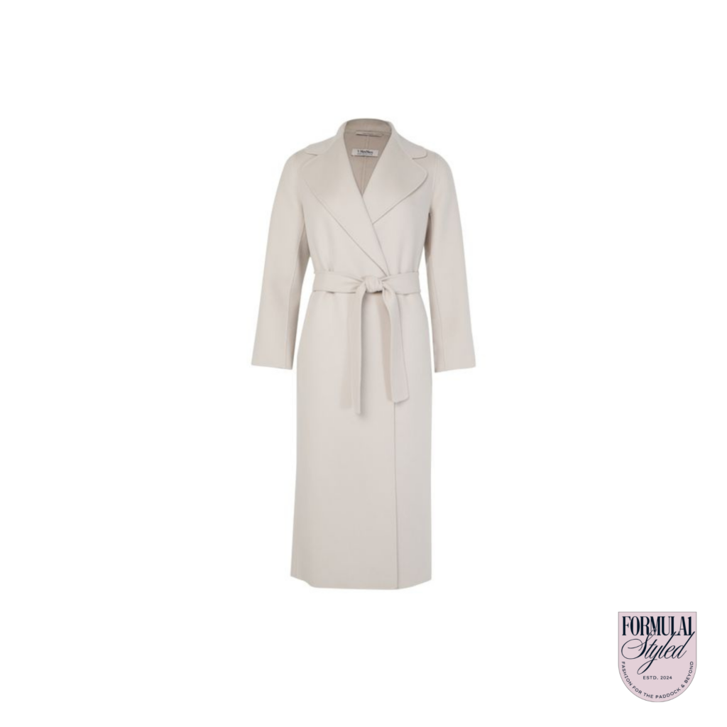 We think the Max Mara coat is the hero piece of Lily’s look that instantly adds structure and quiet luxury to an otherwise soft, pastel palette. Its clean lines and timeless silhouette give her outfit that effortless Monaco polish. We’re sure we’ll continue to see this gem in Lily’s wardrobe moving forward!
