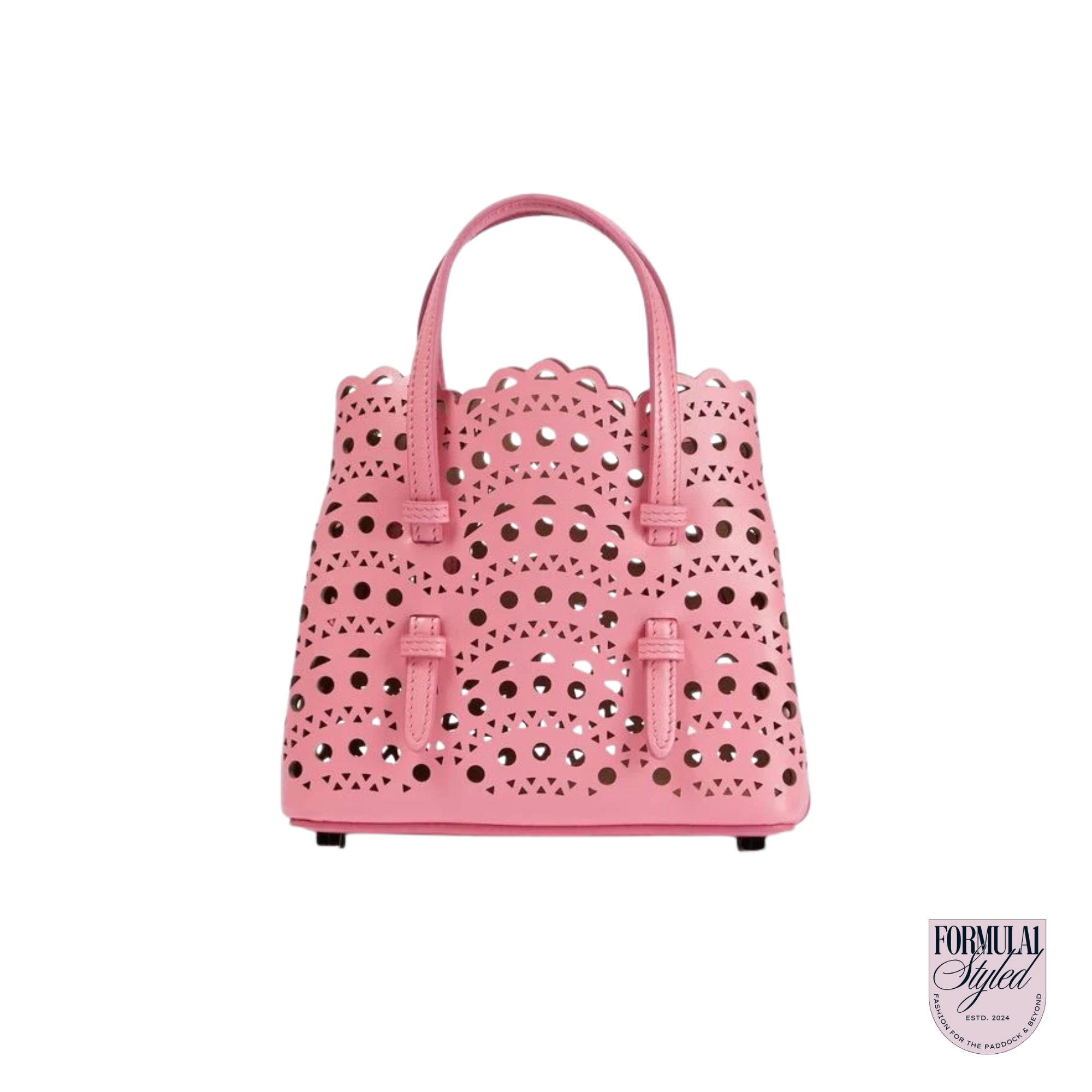 An adorable pink bag, as seen on Alexandra Saint Mleux, girlfriend of Charles Leclerc.