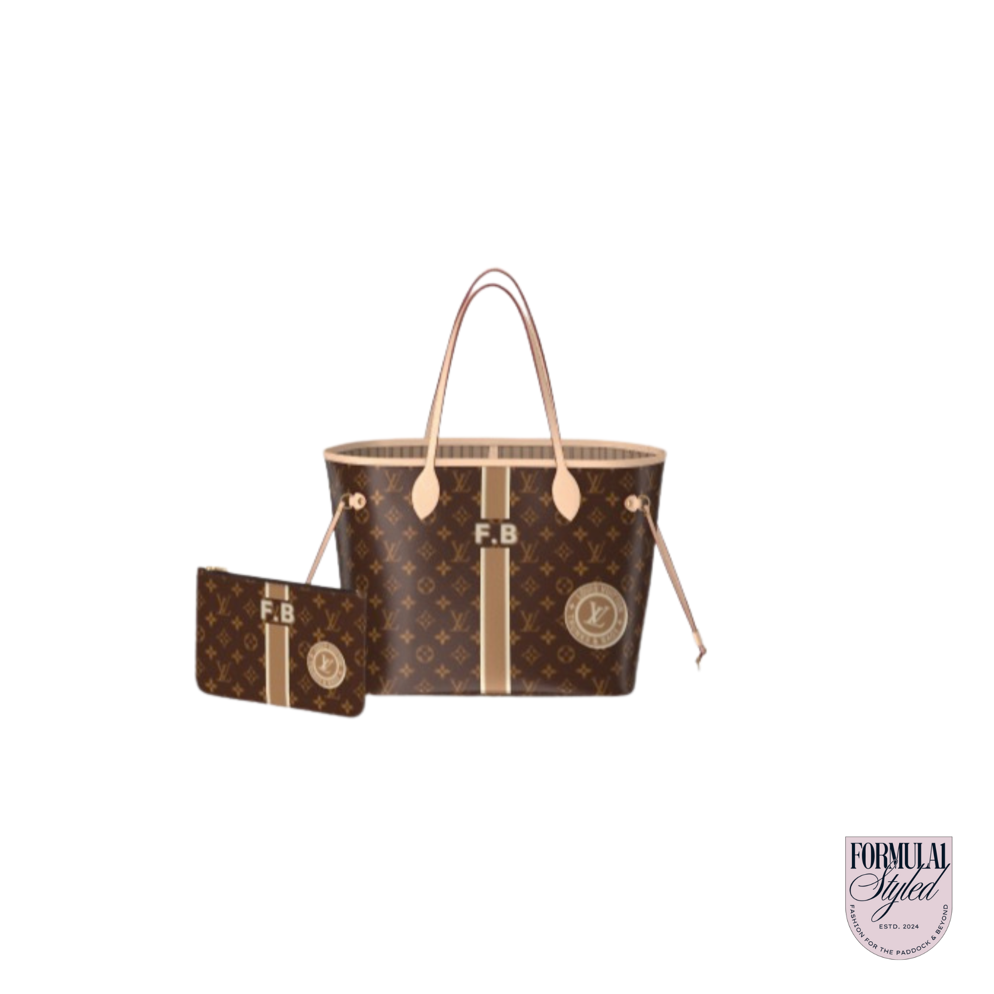 A custom Louis Vuitton tote, as seen on Flavy Barla, girlfriend of Esteban Ocon.
