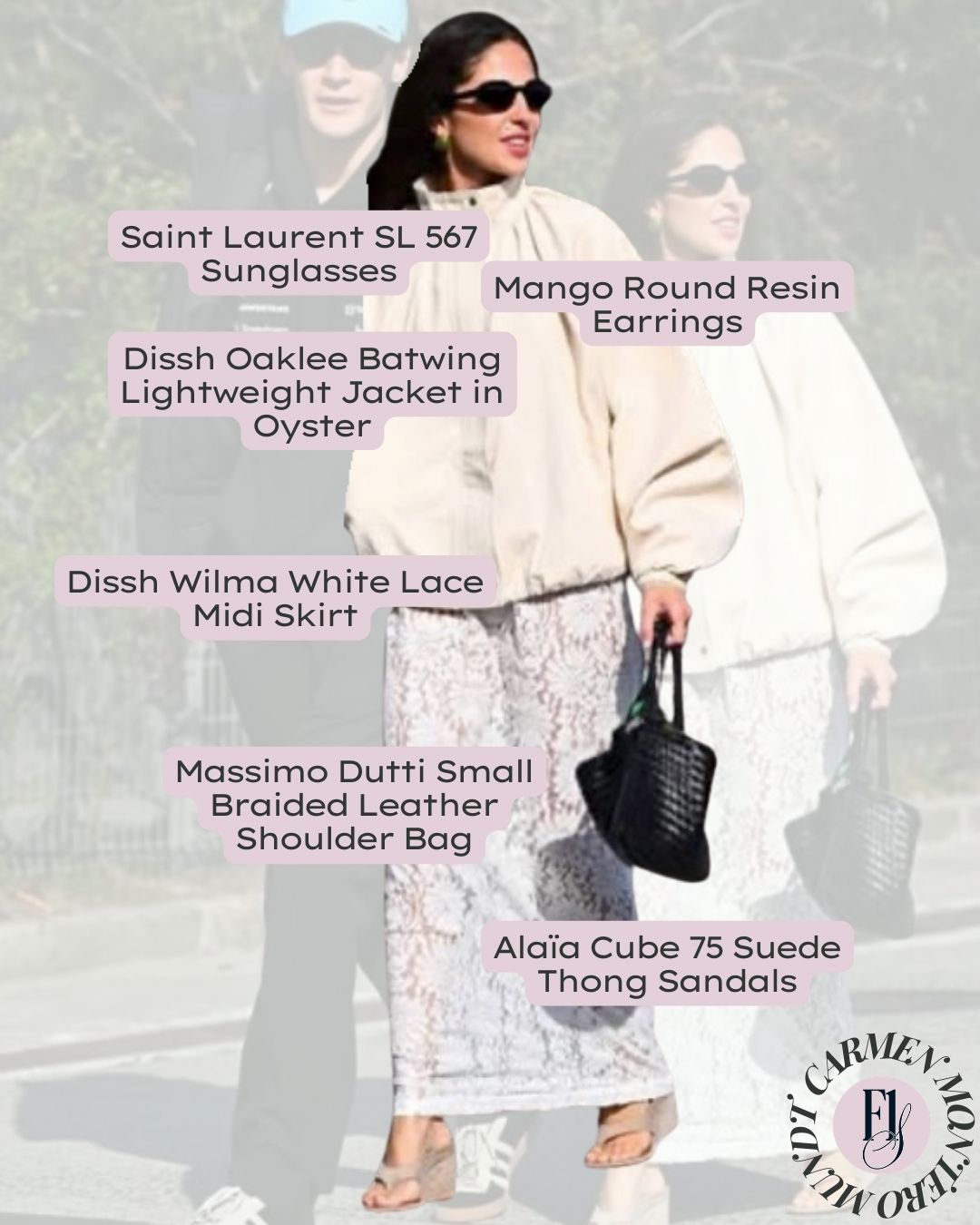 A neutral-with-texture look, as seen on Carmen Montero Mundt at the 2026 Chinese Grand Prix in Shanghai.