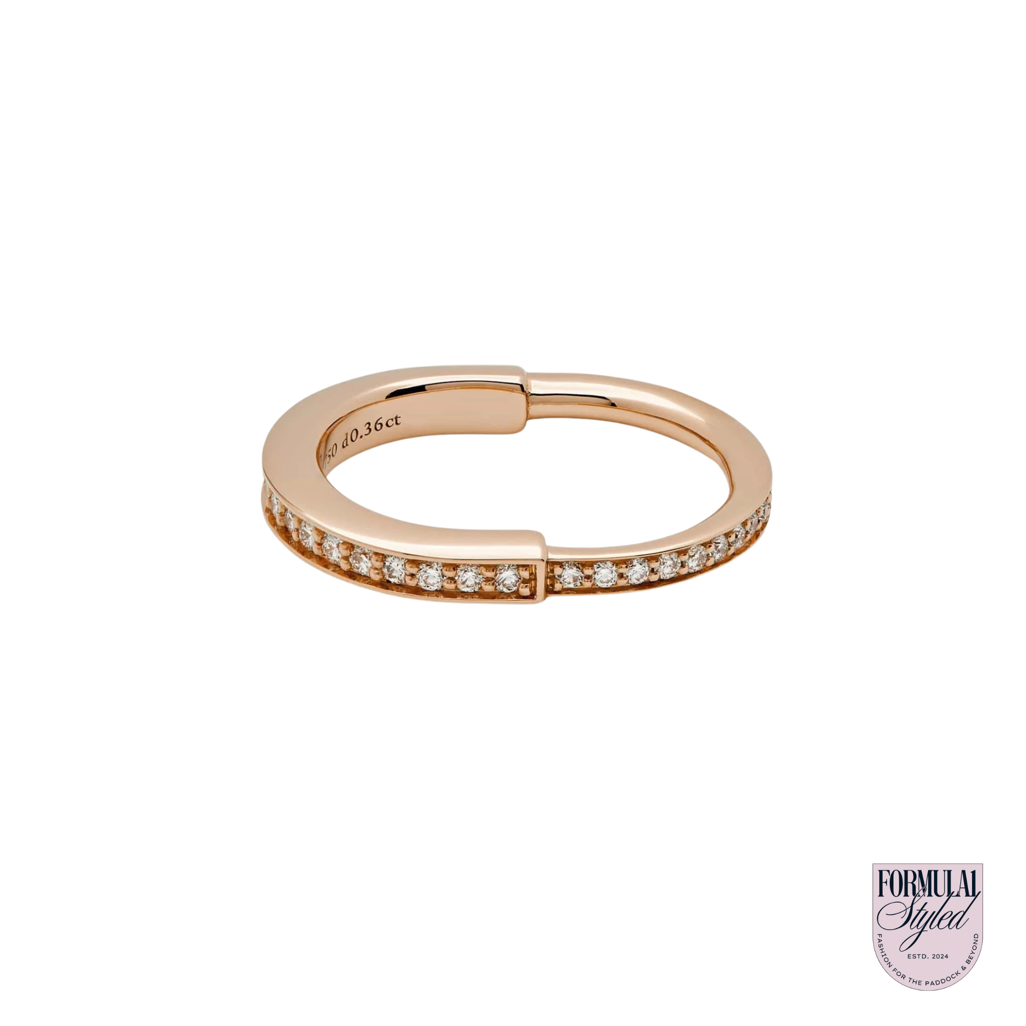 The Tiffany & Co. Lock ring is a bold symbol of unity and diversity, celebrating personal connections that shape us. Crafted in 18k rose gold with round brilliant diamonds totaling 0.38 carats, this ring is a stylish choice whether worn alone or as part of your everyday ring collection