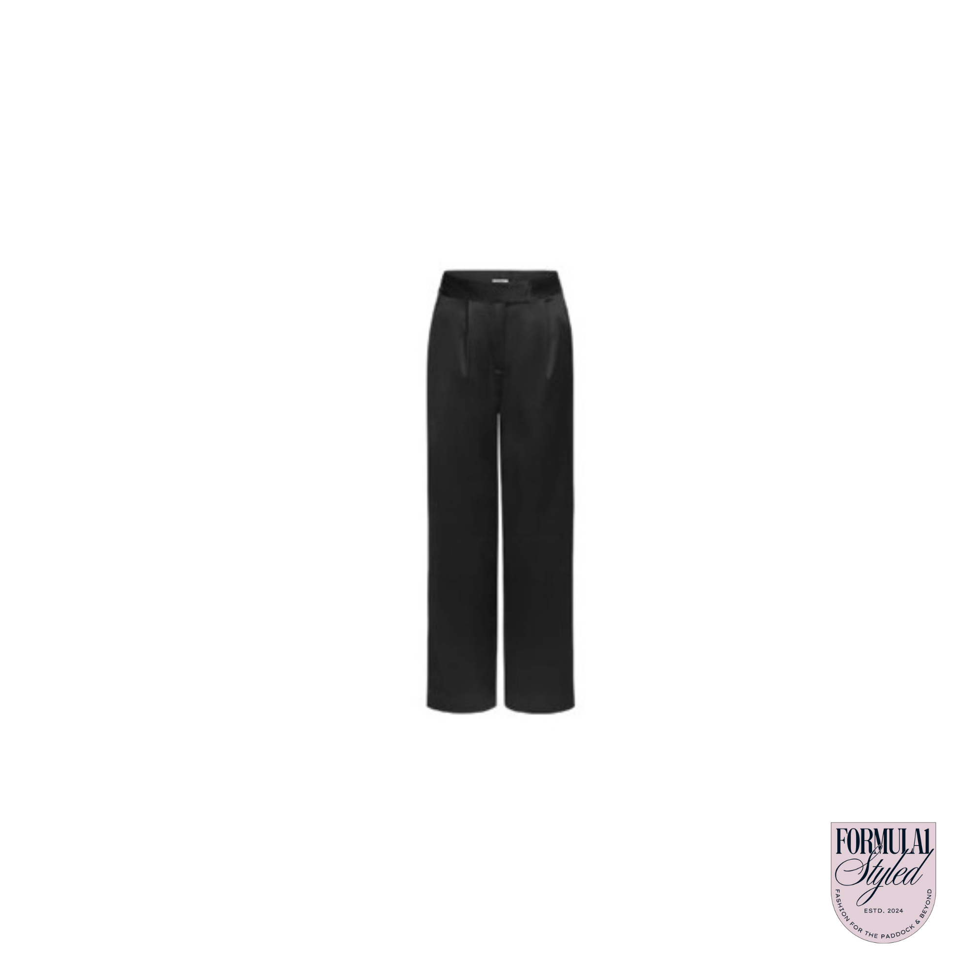 A silky pair of trousers, as seen on Flavy Barla, girlfriend of Esteban Ocon.